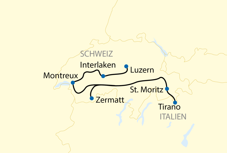 - Besuch von Orten mit klangvollen Namen: Luzern, Montreux, Zermatt und St. Moritz
