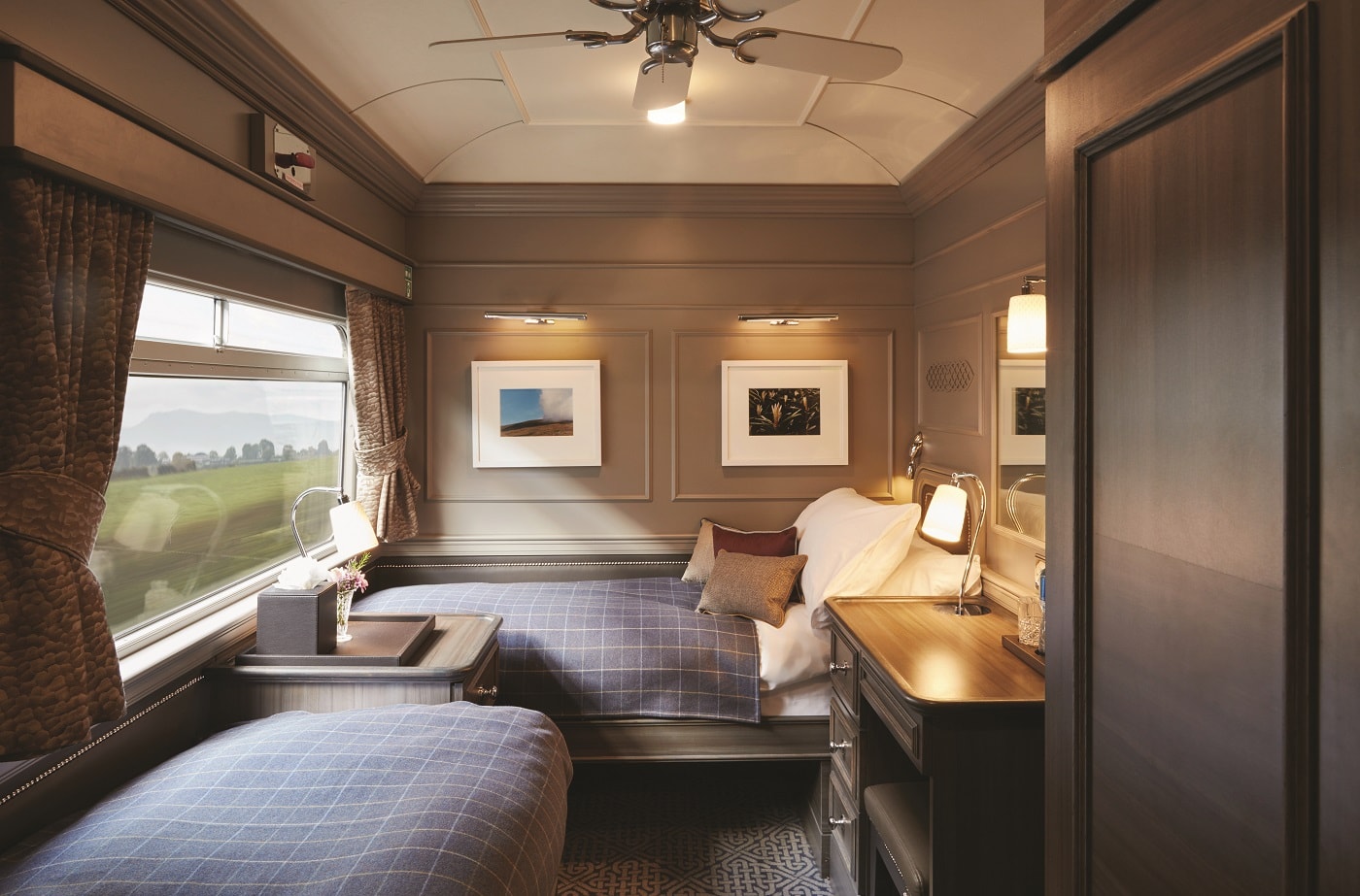 Alle 20 Zweibett-Abteile sind wahlweise mit zwei getrennten Betten oder einem großen Doppelbett ausgestattet. Jedes Abteil besitzt ein eigenes privates Bad mit Dusche, Waschbecken und WC, fließendem Warmwasser, hochwertigen Pflegeprodukten und täglich frischen, weichen, weißen Handtüchern. Ein Druck der Ruftaste genügt, um Ihren Schlafwagenbetreuer auf Ihre Anliegen aufmerksam zu machen. Ein Kleiderschrank und ein Schreibtisch komplettieren die Ausstattung.